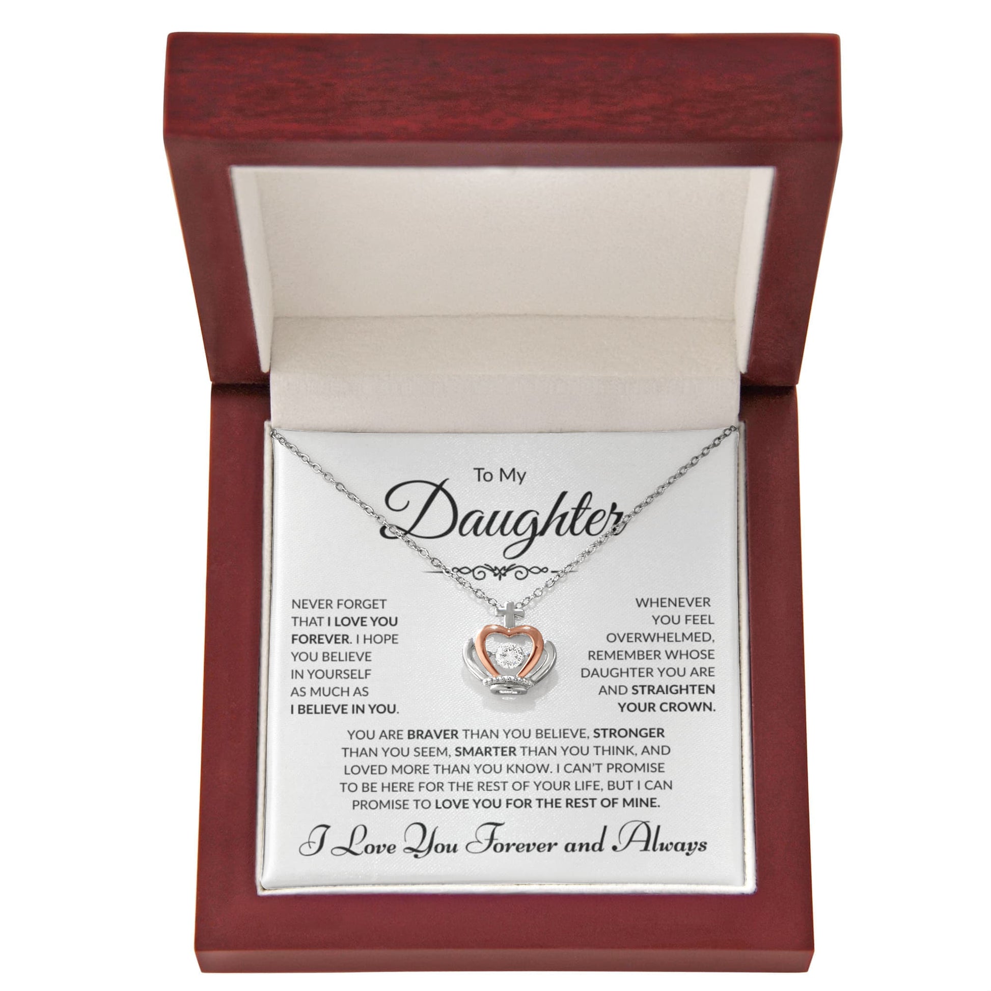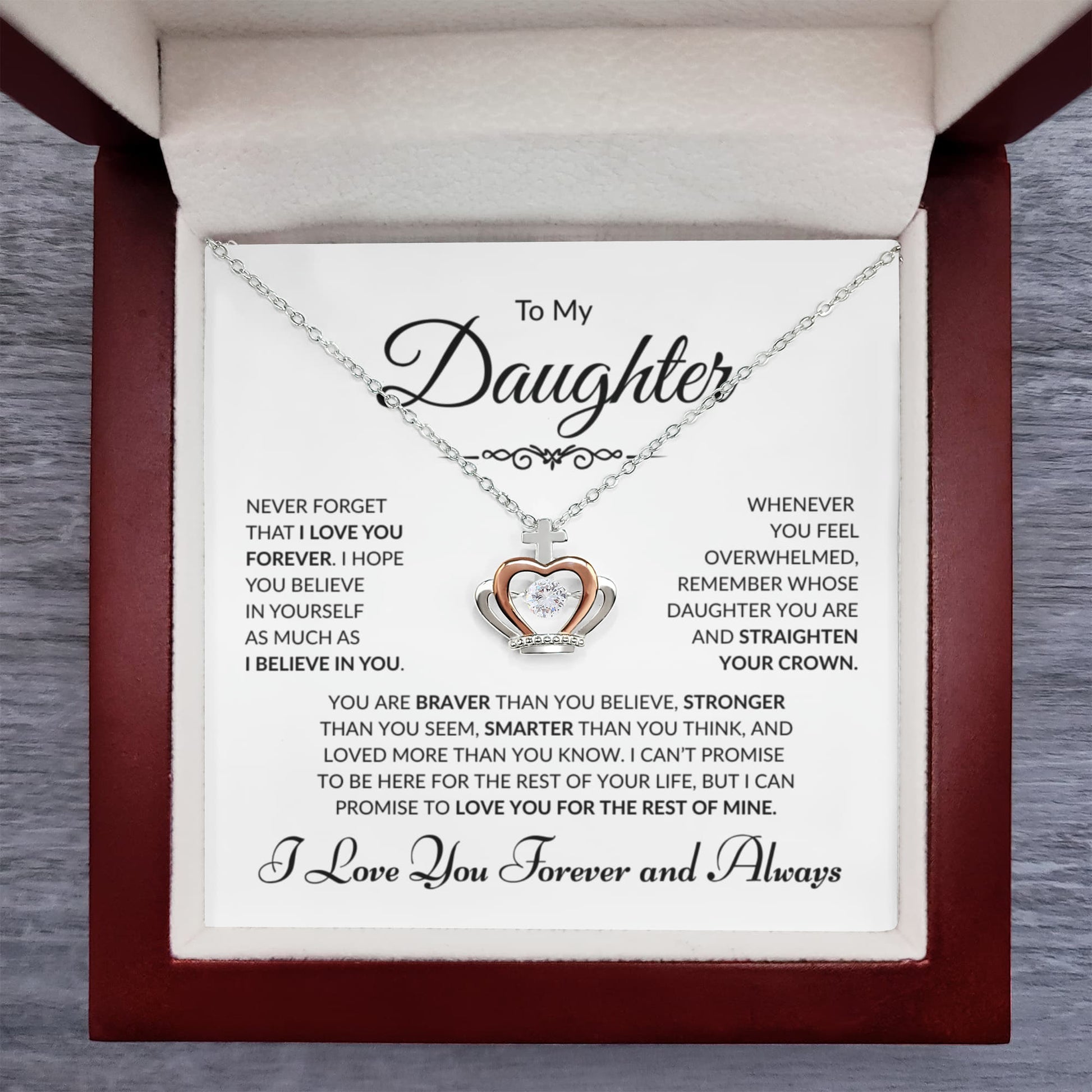 Imagine her reaction receiving this stunning Crown Pendant Necklace. Designed to resemble a regal crown, this exquisite piece features a dazzling cubic zirconia crystal at its center, catching the light with every movement. The delicate blend of silver and rose gold tones adds a touch of timeless beauty, making it the perfect gift for someone who reigns over your heart.